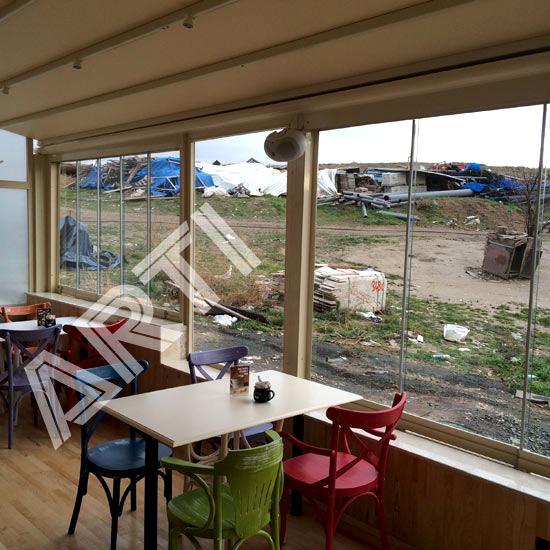 ��yeri, restoran, fastfood, al��-veri� merkezleri, oteller, ma�azalar, cafe-pastaneler katlan�r veya s�rme cam sistemi ile kapat�labilir. B�ylece yazlar� a��p ferah bir ortamda m��terilerinizi konuk deserken k�� aylar�nda camlar�n�z� kapat�p manzaran�z�, i�yeri g�r�n���n� bozmadan m��terilerinizi
